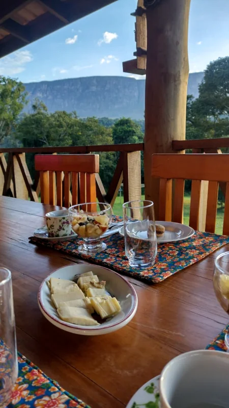 Nada como começar o dia com um café da manhã mineirinho, farto e cheio de carinho, servido no nosso deck com vista panorâmica para a Serra da Canastra.