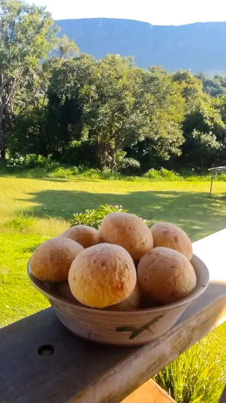 Enquanto você saboreia tudo isso, o cenário é incrível: o paredão da Canastra, o canto dos passarinhos ao fundo, o verde da serra se estendendo no horizonte e a visita de um canarinho-da-terra, que costuma fazer ninho por aqui.